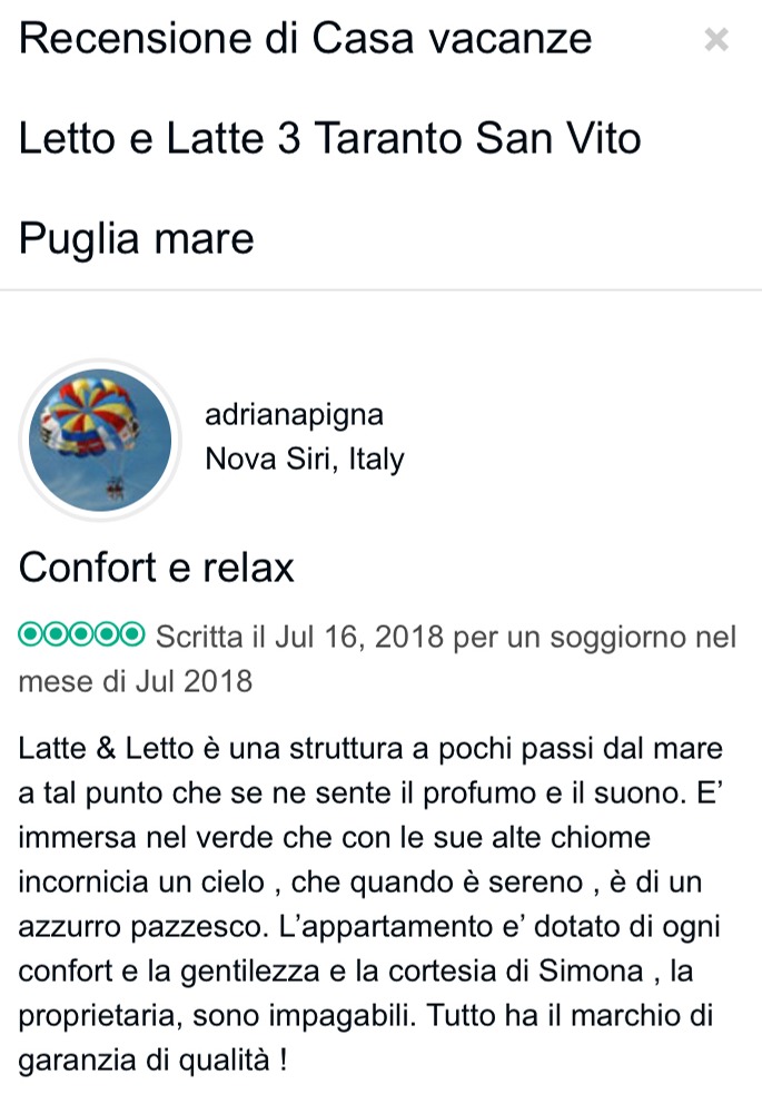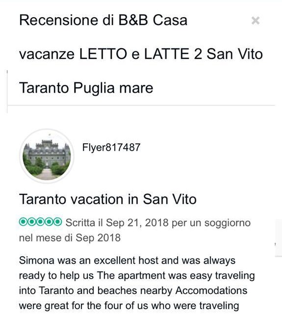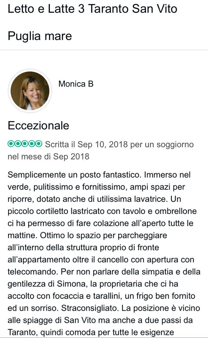 Casa Vacanze b&b LETTO e LATTE San Vito Taranto Puglia Italy